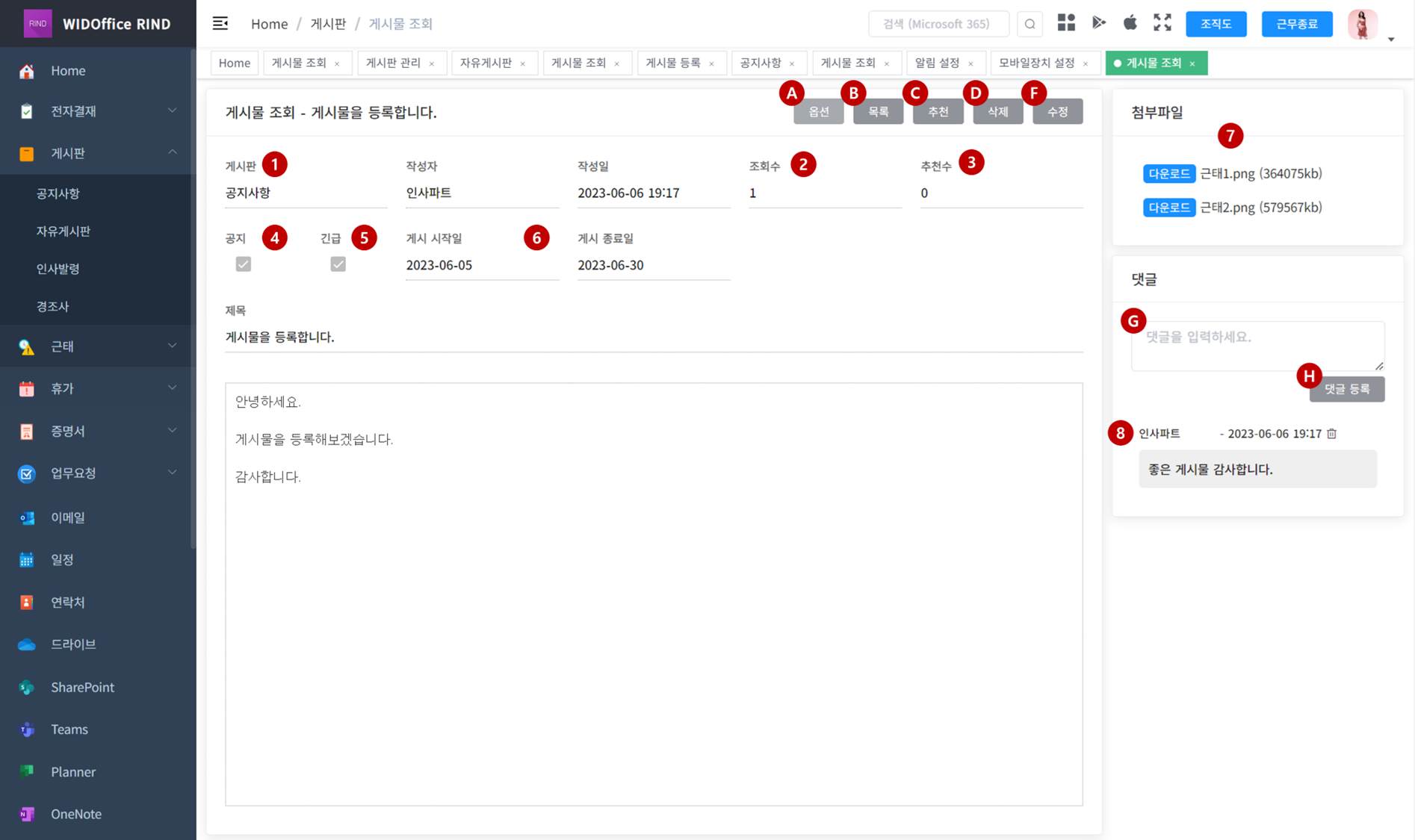 게시판의 검색 및 조회 관련 내용은 '게시판 목록 및 게시글 조회' 가이드를 참고해주세요.
